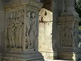 يوجد في الطريق الرئيسي لَوحَة واحِدة كَبيرة مِن حَرب تراجان على كل جدار. وداخل الممرات الجانبية ثمانية تماثيل (اثنان على كل جدار)، حيث دمرت إلى الحد الذي لا يمكن التعرف عليها.