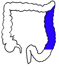 ![]() رسم للقولون يظهره من الأمام (لُوِّن القولون النازل بالأزرق). | |