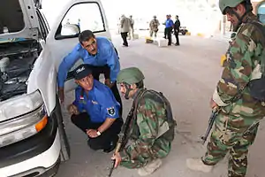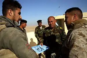 رجال من المغاوير وحرس الحدود العراقيين في أثناء تدريب في منفذ طريبيل الحدودي في 7 إكتوبر 2006