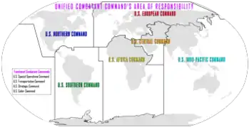 ![]() | القيادة العسكرية الأمريكية في إفريقيا | USAFRICOM | أكتوبر 1, 2008[3] | ثكنات كيلي، شتوتغارت، ألمانيا |