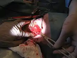 ![]() صورة لموضع جراحي: "قيلة حنجرية". صورة لموضع جراحي: "قيلة حنجرية". | |