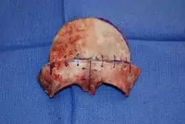 - إغلاق عيوب الجلد المفتوحة للوقاية من العدوى وحدوث جفاف في أنسجة المخ.