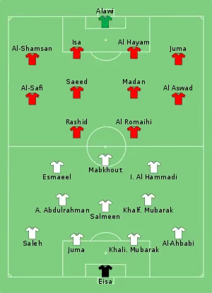 - تقدمت الإمارات العربية المتحدة المتصدر في المجموعة أ لمواجهة الفريق الثالث من المجموعة ج، المجموعة د أو المجموعة ر.