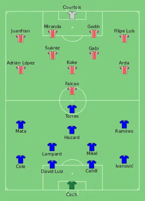 |CitationClass=تم تجاهله (مساعدة) - "Full Time Report – Chelsea – Atlético Madrid" (PDF). UEFA.com. Union of European Football Associations. 31 أغسطس 2012. مؤرشف من الأصل (PDF) في 12 مايو 2014. اطلع عليه بتاريخ 31 أغسطس 2012. الوسيط