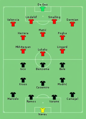 - "UEFA Super Cup - Real Madrid-Man. United". UEFA.com. Union of European Football Associations. 8 August 2017. مؤرشف من الأصل في 10 ديسمبر 2017. اطلع عليه بتاريخ 08 أغسطس 2017. الوسيط
