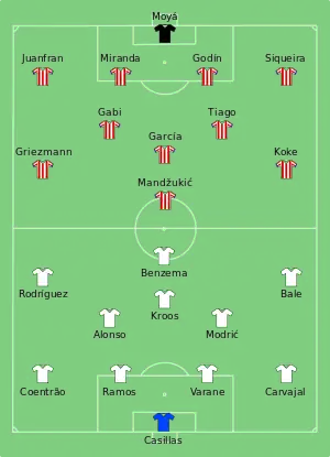 |CitationClass=تم تجاهله (مساعدة) - "Atletico Madrid 1-0 Real Madrid (agg 2-1): Cristiano Ronaldo, Gareth Bale and James Rodriguez fail to fire as quickfire Mario Mandzukic secures Spanish Super Cup for Diego Simeone". Daily Mail. 22 August 2014. مؤرشف من الأصل في 4 مارس 2016. اطلع عليه بتاريخ 25 أغسطس 2014. الوسيط