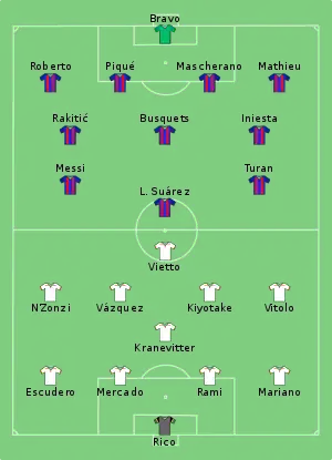 |CitationClass=تم تجاهله (مساعدة) - "في مباراة عنيفة.. برشلونة يحتفظ بكأس إسبانيا". مؤرشف من الأصل في 7 سبتمبر 2016. اطلع عليه بتاريخ 30 يونيو 2016. الوسيط