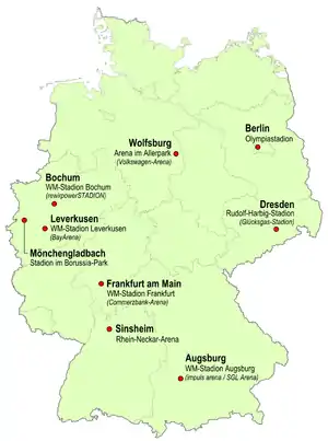- Germany to stage 2011 showpiece. FIFA.com. 30 October 2007. Accessed 29 April 2008. نسخة محفوظة 08 مارس 2010 على موقع واي باك مشين.