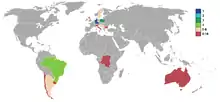 | 13 | الأوروغواي | 0 | 1 | 2 | 1 | 1 | 6 | 5- |