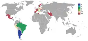 | 10 | إسبانيا | 1 | 1 | 1 | 3 | 2 | 2 | 0 |