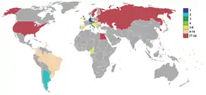 | 17 | الاتحاد السوفييتي | 1 | 0 | 2 | 2 | 4 | 4 | 0 |