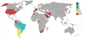 | 17 | إسبانيا | 1 | 1 | 1 | 4 | 8 | 4 | 4 |