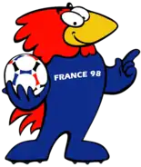 كانت التميمة الخاصة للبطولة هي الديك فووتيكس، وهي إحدى الرموز الوطنية لفرنسا حيث تشتهر فرنسا بالديوك، ويعد الديك هو الشعار المستخدم لدى المنتخب الفرنسي أيضاً، تم عرضه لأول مرة عام 1996 وتم تصميمه من قبل المصمم الفرنسي فابريس بيالوت وتم اختياره من قبل مشاهدي التلفزيون الفرنسي، اسمه مكون من مقطعين: فووت foot ويعني القدم، و"-ix" مستمد من الكارتون الشهير أستريكس (بالفرنسية: Astérix)، لون جسمه أزرق مثل منتخبه الوطني مكتوب عليه بالأبيض فرنسا 98.[9][10]