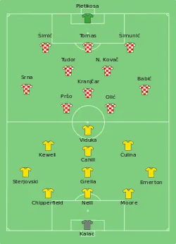 - تحصل سيمونيتش على 3 بطاقات صفراء خلال المباراة : ونسي الحكم طرده من الملعب بعد البطاقة الصفراء الثانية. وتحصل على البطاقة الحمراء بعد تلقيه لبطاقة صفراء ثالثة. وجرى تغيير تقرير الفيفا لاحقا.