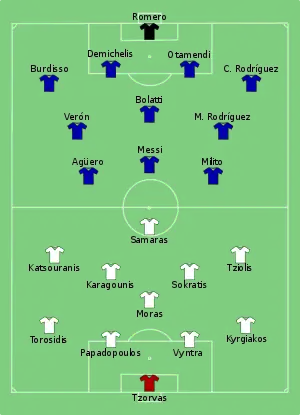 |CitationClass=تم تجاهله (مساعدة) - "Tactical Line-up – Group B – Greece-Argentina". FIFA.com. Fédération Internationale de Football Association. 22 June 2010. مؤرشف من الأصل (PDF) في 5 يوليو 2017. اطلع عليه بتاريخ 22 يونيو 2010. الوسيط
