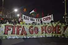 |CitationClass=تم تجاهله (مساعدة) - "17 Pictures Of Shocking Violence As Police 'Open Live Fire' On Anti-Fifa Protesters". Huffington Post. 16 يونيو 2014. مؤرشف من الأصل في 19 نوفمبر 2018. الوسيط