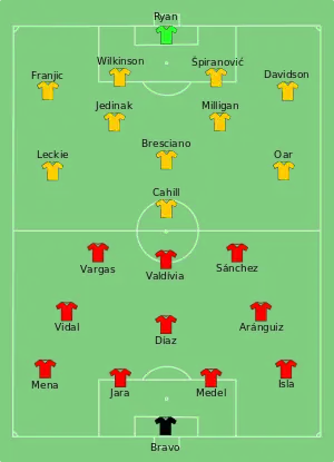 |CitationClass=تم تجاهله (مساعدة) - "مواجهات مباشرة: تشيلي × أستراليا". FIFA.com. مؤرشف من الأصل في 13 ديسمبر 2013. الوسيط