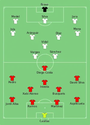 |CitationClass=تم تجاهله (مساعدة) - "مواجهات مباشرة: إسبانيا × تشيلي". FIFA.com. مؤرشف من الأصل في 13 ديسمبر 2013. الوسيط