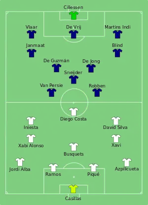 - "مواجهات مباشرة: إسبانيا × هولندا". FIFA.com. مؤرشف من الأصل في 13 ديسمبر 2013. الوسيط