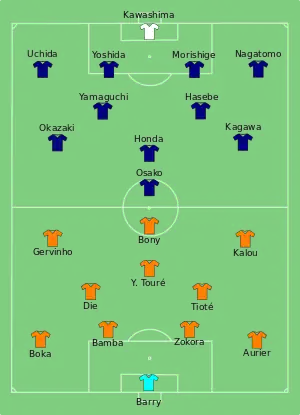 |CitationClass=تم تجاهله (مساعدة) - "مواجهات مباشرة: ساحل العاج × اليابان". FIFA.com. مؤرشف من الأصل في 11 سبتمبر 2014. الوسيط