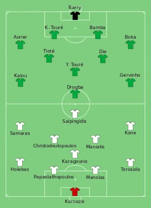 |CitationClass=تم تجاهله (مساعدة) - "مواجهات مباشرة: اليونان × ساحل العاج". FIFA.com. مؤرشف من الأصل في 11 سبتمبر 2014. الوسيط