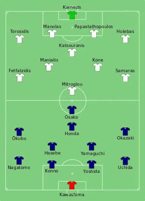 |CitationClass=تم تجاهله (مساعدة) - "مواجهات مباشرة: اليابان × اليونان". FIFA.com. مؤرشف من الأصل في 11 سبتمبر 2014. الوسيط