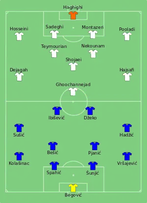 |CitationClass=تم تجاهله (مساعدة) - "Head-to-Head: Bosnia and Herzegovina v Iran". FIFA.com. مؤرشف من الأصل في 12 سبتمبر 2014. الوسيط