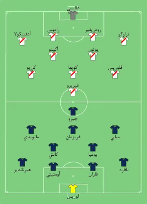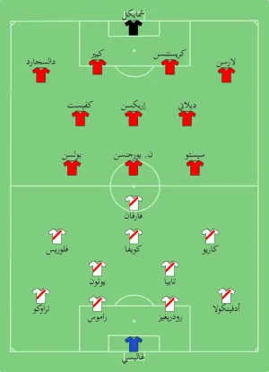 |CitationClass=تم تجاهله (مساعدة) - "Tactical Line-up – المجموعة ج – فرنسا-بيرو" (PDF). FIFA.com. الاتحاد الدولي لكرة القدم. 21 يونيو 2018. مؤرشف من الأصل (PDF) في 8 يوليو 2018. اطلع عليه بتاريخ 21 يونيو 2018. الوسيط