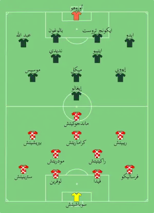 |CitationClass=تم تجاهله (مساعدة) - "Tactical Line-up – Group D – Croatia-Nigeria" (PDF). FIFA.com. Fédération Internationale de Football Association. 16 يونيو 2018. مؤرشف من الأصل (PDF) في 15 سبتمبر 2018. اطلع عليه بتاريخ 16 يونيو 2018. الوسيط