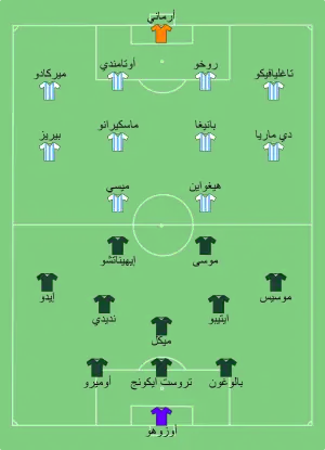 |CitationClass=تم تجاهله (مساعدة) - "Tactical Line-up – Group D – Nigeria v Argentina" (PDF). FIFA.com. Fédération Internationale de Football Association. 26 يونيو 2018. مؤرشف من الأصل (PDF) في 15 سبتمبر 2018. اطلع عليه بتاريخ 26 يونيو 2018. الوسيط