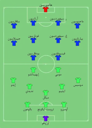 |CitationClass=تم تجاهله (مساعدة) - "Tactical Line-up – Group D – Nigeria-Iceland" (PDF). FIFA.com. Fédération Internationale de Football Association. 22 يونيو 2018. مؤرشف من الأصل (PDF) في 15 سبتمبر 2018. اطلع عليه بتاريخ 22 يونيو 2018. الوسيط