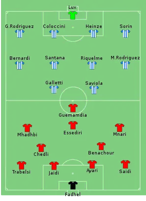 - "ARG-TUN (Match 1), Anhauser Busch Man of the Match: Juan Roman Riquelme (ARG)". FIFA.com. Fédération Internationale de Football Association. 15 يونيو 2005. مؤرشف من الأصل في 5 يناير 2006. اطلع عليه بتاريخ 23 يونيو 2013. الوسيط