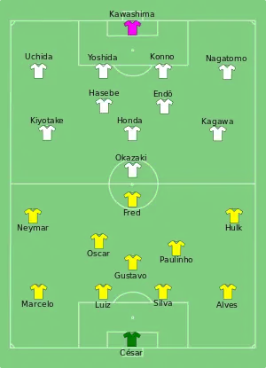 - "Tactical Line-up – Group A – Brazil-Japan" (PDF). FIFA.com. Fédération Internationale de Football Association. 15 June 2013. مؤرشف من الأصل (PDF) في 04 مارس 2016. اطلع عليه بتاريخ 15 يونيو 2013. الوسيط