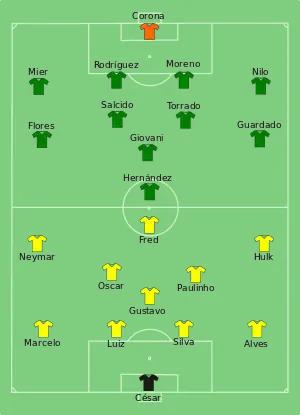 |CitationClass=تم تجاهله (مساعدة) - "Tactical Line-up – Group A – Brazil-Mexico" (PDF). FIFA.com. Fédération Internationale de Football Association. 19 June 2013. مؤرشف من الأصل (PDF) في 04 مارس 2016. اطلع عليه بتاريخ 19 يونيو 2013. الوسيط