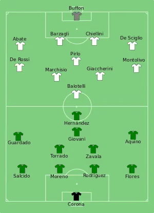 |CitationClass=تم تجاهله (مساعدة) - "Tactical Line-up – Group A – Mexico-Italy" (PDF). FIFA.com. Fédération Internationale de Football Association. 16 June 2013. مؤرشف من الأصل (PDF) في 04 مارس 2016. اطلع عليه بتاريخ 16 يونيو 2013. الوسيط