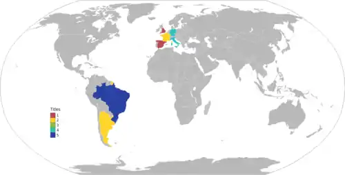 | البلد | كأس جول ريميه | كأس بطولة كأس العالم | المجموع |