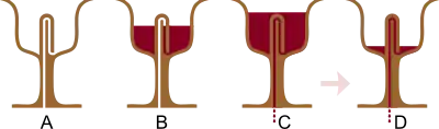 قطاع طولي في مراحل كأس فيثاغورس.