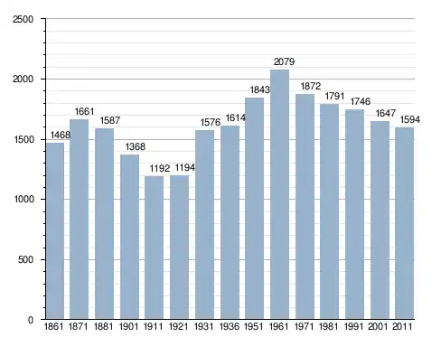 في سنة 1861 بلغ عدد السكان 1٬468 نسمة، وتطور العدد ليصل في سنة 2011 لـ 1٬594 نسمة.