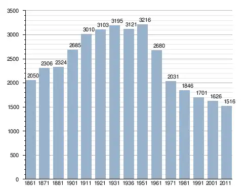 في سنة 1861 بلغ عدد السكان 2٬050 نسمة، وتطور العدد ليصل في سنة 2011 لـ 1٬516 نسمة.