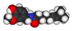 كابسيسين (بالإنجليزية: Capsaicin) واسمه العلمي "8-ميثيل-N-فانيلايل-6-نونيناميد" وصيغته الجزيئية هي ((CH3)sub>2CHCH=CH(CH2)sub>4CONHCH2C6H3-4-(OH)-3-(OCH3)) هو المركب النشط في الفلفل الحار.[1][2][3] و،. والكابسيسين النقي مادة عديمة اللون والرائحة كما أنه كاره للماء. تتراوح قوة الكابسايسين النقي التي تمنح الفلفل الحار طعمه الحارق بين 15 مليون و16 مليون وحدة سكوفيل.