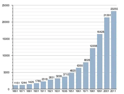 في سنة 1861 بلغ عدد السكان 1٬151 نسمة، وتطور العدد ليصل في سنة 2011 لـ 23٬255 نسمة.