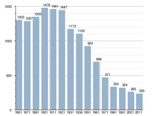 في سنة 1861 بلغ عدد السكان 1٬303 نسمة، وتطور العدد ليصل في سنة 2011 لـ 235 نسمة.