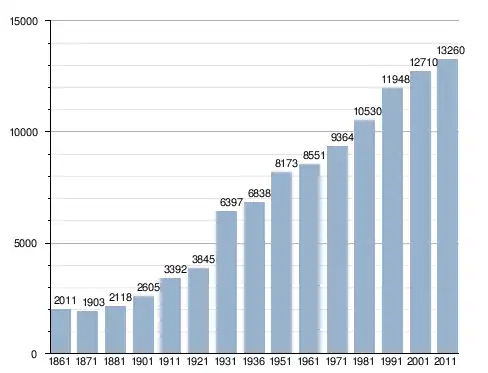 في سنة 1861 بلغ عدد السكان 2٬011 نسمة، وتطور العدد ليصل في سنة 2011 لـ 13٬260 نسمة.