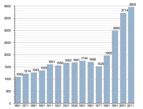في سنة 1861 بلغ عدد السكان 1٬092 نسمة، وتطور العدد ليصل في سنة 2011 لـ 3٬959 نسمة.