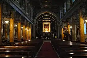 يقع تمثال البابا بندكت الخامس عشر في ساحة الكاتدرائية. كما وتحوي الكاتدرائية قبر جوزيبي دونيزيتي، وهو موسيقي عمل في بلاط السلطان العثماني محمود الثاني، ودفن في سرداب الكنيسة.