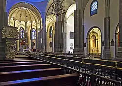 تتكون الكاتدرائية من ثلاثة مماشي يفصلها صفوف من الأعمدة، وبها العديد من المصليات الجانبية والإسعافية وراء المذبح مع نوافذ كبيرة. الكاتدرائية بها قبة كبيرة تهيمن على المشهد في المدينة ومستوحاة واجهتها الكلاسيكية الجديدة من واجهة كاتدرائية مدينة بامبلونا (نافارا، إسبانيا). ويصل ارتفاع القبة إلى 41.5 متراً. وتعلو العقود القنطرية فتحات صغيرة تسمح بدخول الضوء الطبيعي. وتغطي القبة بلوحات من النحاس، مقلدة بذلك كاتدرائيات وسط وشمال أوروبا.