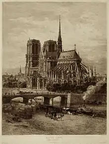 ![]() صورة تظهر الواجهة الجنوبية للكاتدرائية على نهر السين صورة تظهر الواجهة الجنوبية للكاتدرائية على نهر السين | |