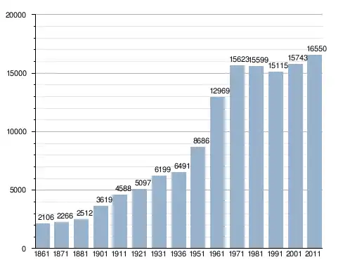 في سنة 1861 بلغ عدد السكان 2٬106 نسمة، وتطور العدد ليصل في سنة 2011 لـ 16٬550 نسمة.