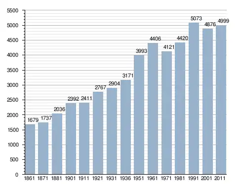 في سنة 1861 بلغ عدد السكان 1٬679 نسمة، وتطور العدد ليصل في سنة 2011 لـ 4٬999 نسمة.