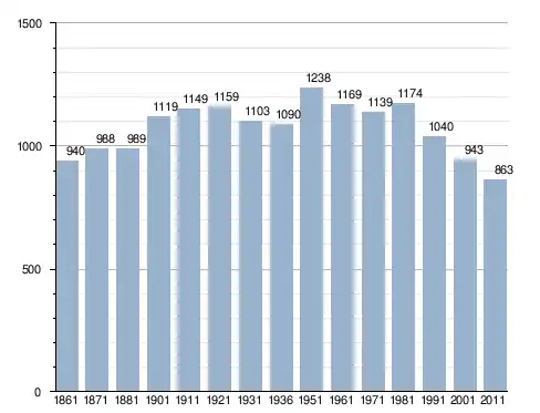 في سنة 1861 بلغ عدد السكان 940 نسمة، وتطور العدد ليصل في سنة 2011 لـ 863 نسمة.